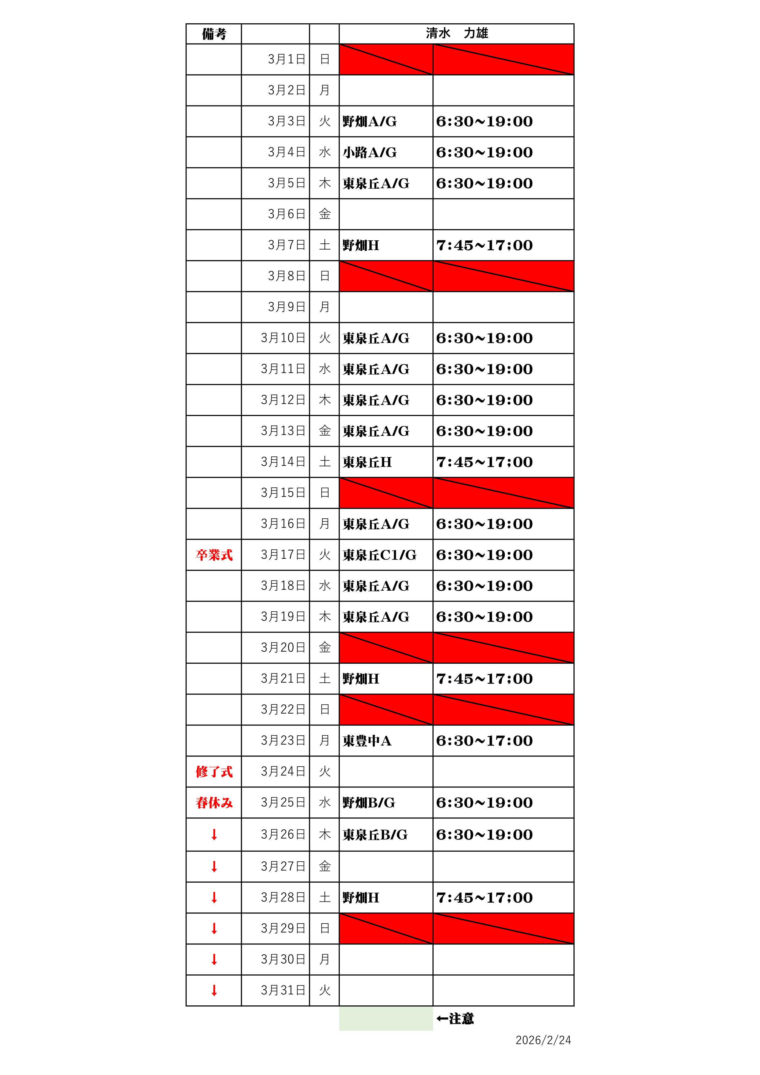 最新のシフト表は下記をご確認ください。