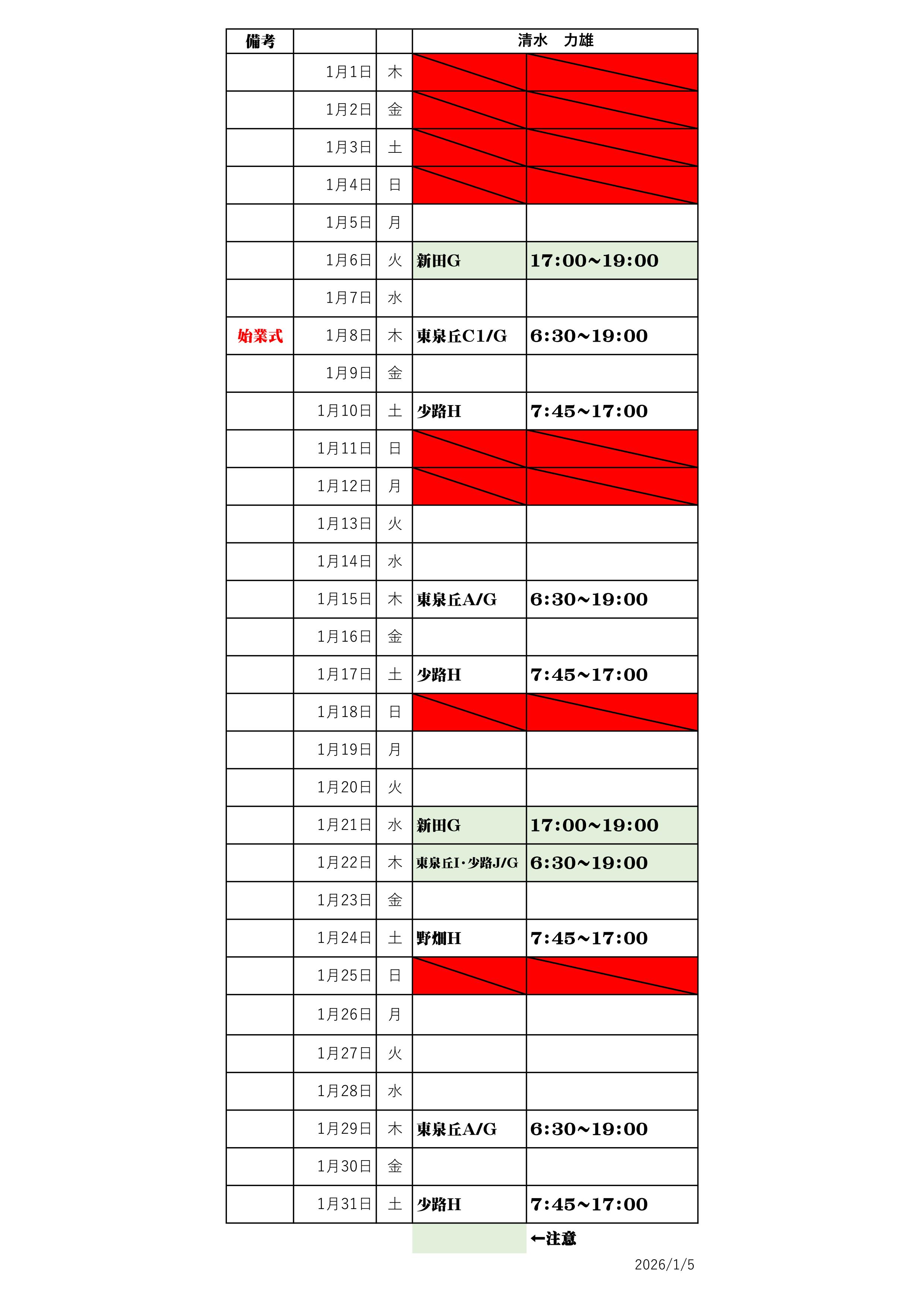 前回のシフト表はこちらをクリック