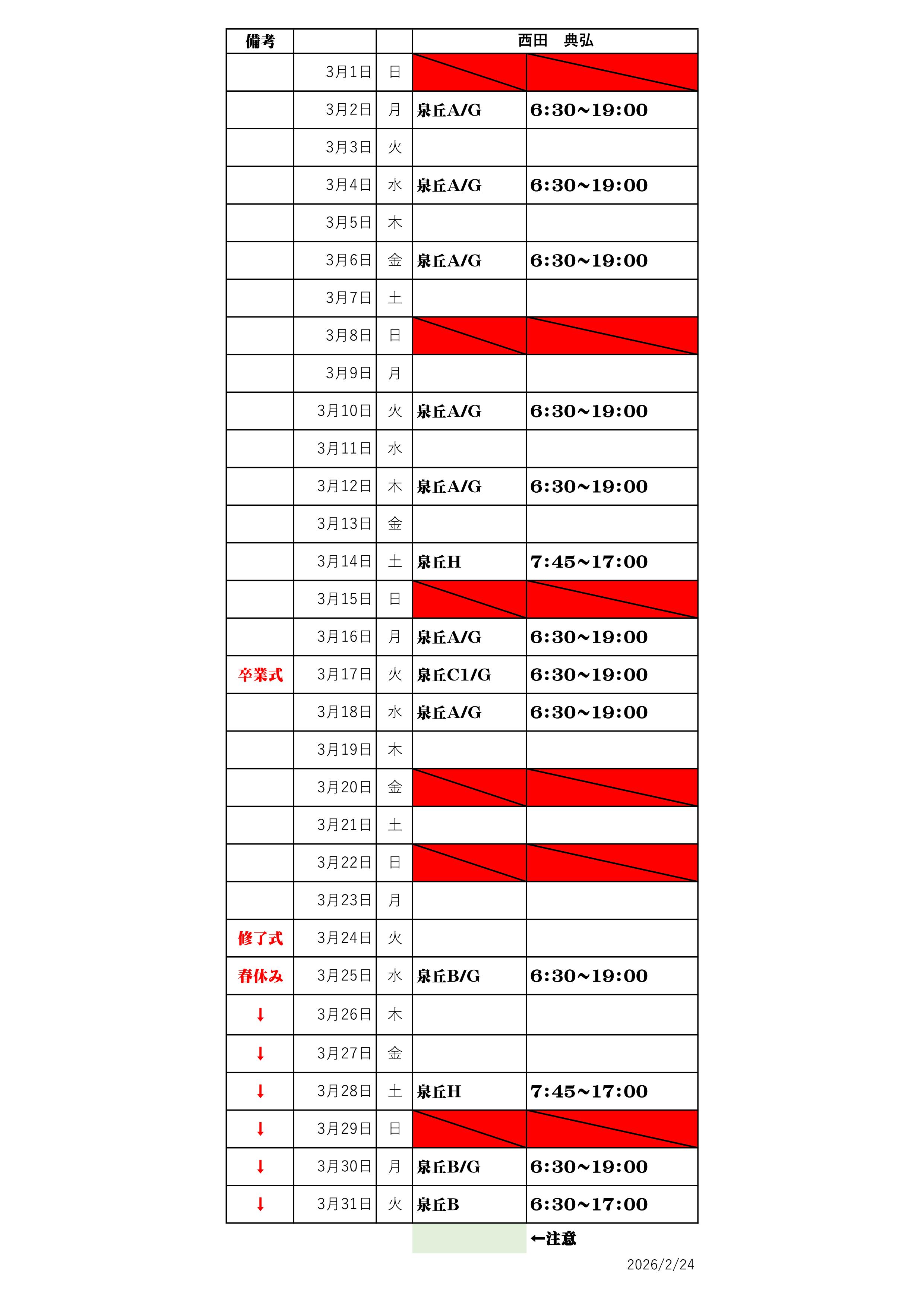 最新のシフト表は下記をご確認ください。
