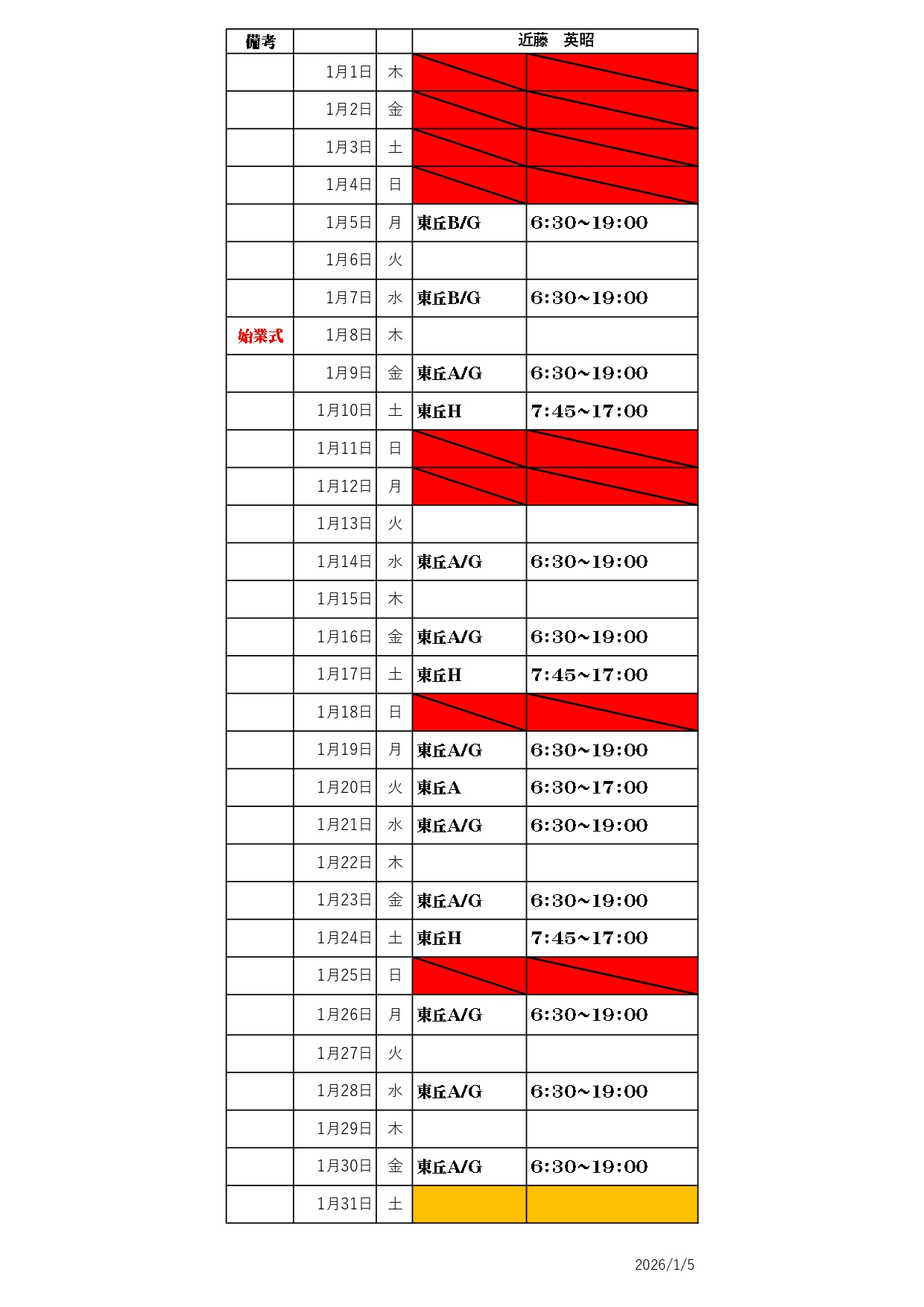 最新のシフト表は下記をご確認ください。
