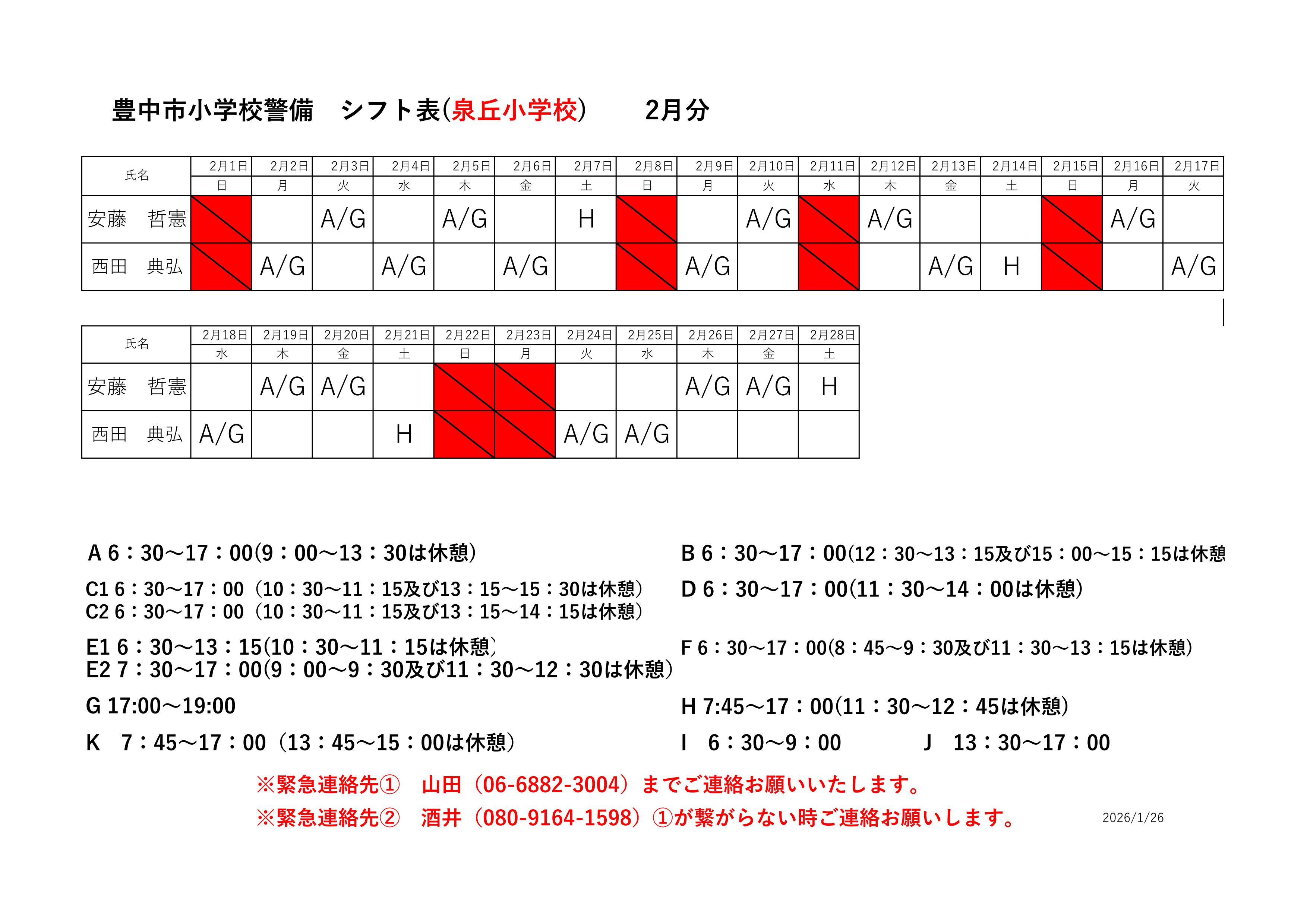 最新のシフト表は下記をご確認ください。